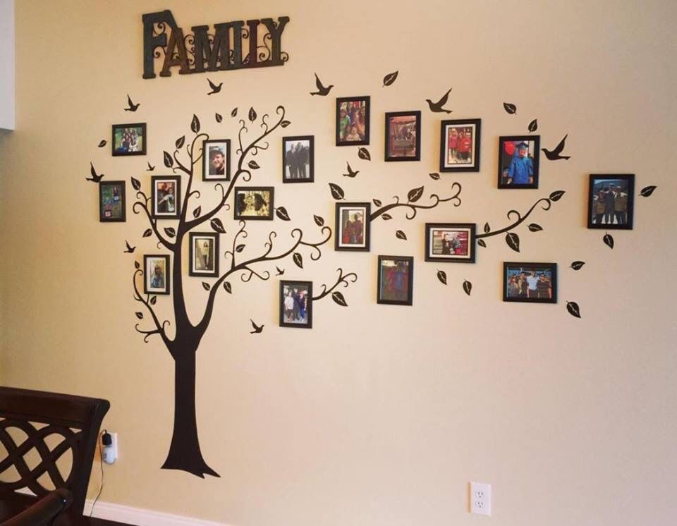 Мы нашли эту съемную настенную наклейку на Etsy, которую вы можете купить. Или вы можете заказать индивидуальную наклейку с цитатой. После того, как вы прикрепите цитату к стене, начните размещать вокруг нее свои семейные фотографии.