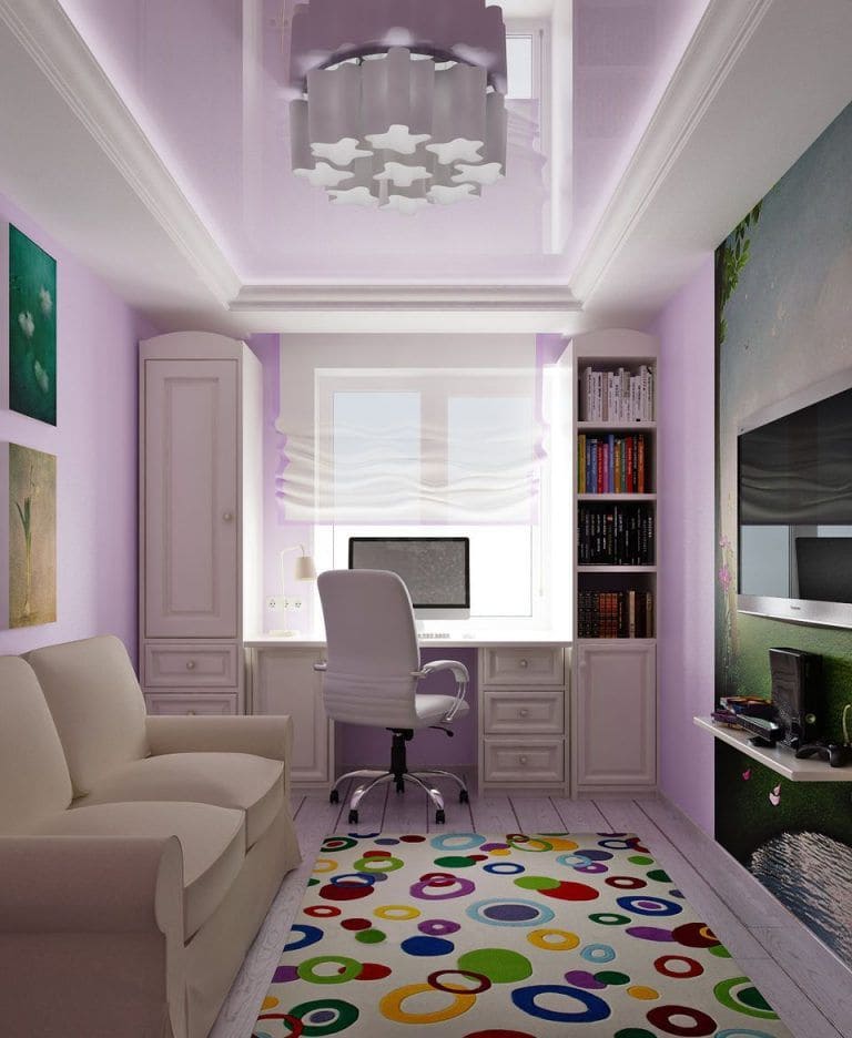 Для большого ребенка лучше выбирать более спокойные решения. У подростка должно быть удобное, достаточно освещенное место для выполнения уроков. Необходимо также создать ему комфортные условия для занятия любимым хобби.