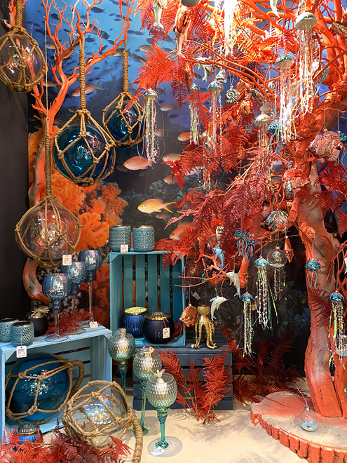 Короли необычного расположения елки в пространстве — это, конечно же, эстонцы Shi Shi. Их стенд на выставке каждый год в буквальном и переносном смысле кружит нам голову — трудно устоять, когда красотища и слева, и справа, и сверху тоже! Шиши тяготеют к гламуру, богатым фактурным украшениям и стильным деталям. Отдельная любовь — птицы!