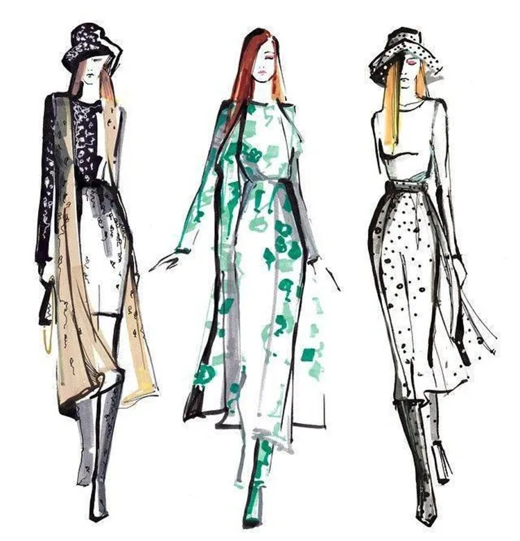 Эскизы могут быть нарисованы в лаконичной или, наоборот, в сложной технике, главное, чтобы был виден концептуальный подход, чтобы эскизы передавали то, что вы хотите выразить своей коллекцией. Отнеситесь к эскизам, как к произведению искусства — важно, чтобы вам самим доставила удовольствие работа над ними.