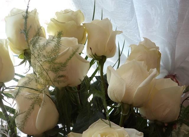 Белые розы на праздничном столе