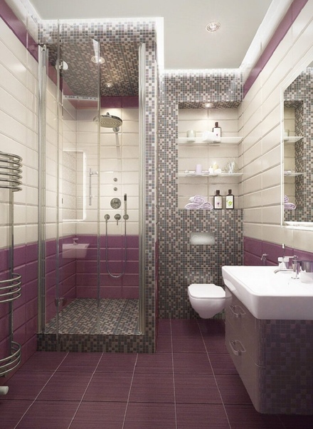 Не злоупотребляй сложной отделкой. Лучше не сочетать сразу несколько плиток на одной стене, потому что на такой маленькой площади высок риск перемудрить с орнаментами. Особенно осторожно работай со строгими горизонтальными и вертикальными линиями.