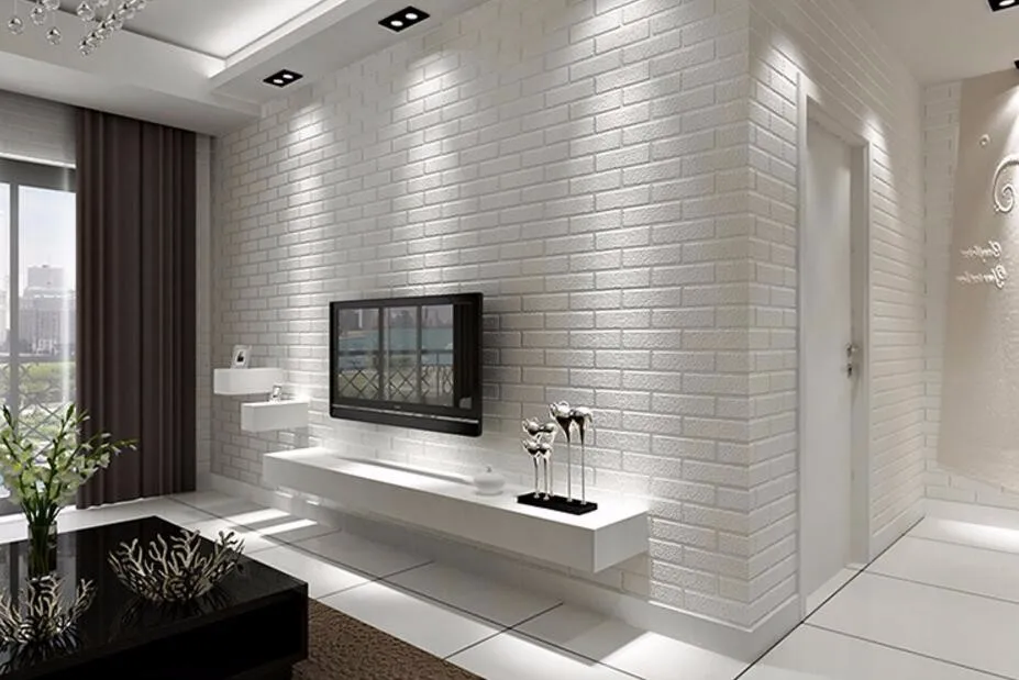 Белая стена из кирпича в гостиной