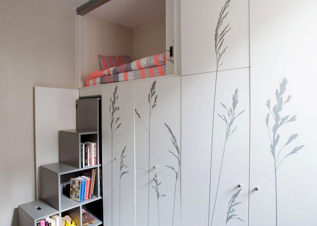 Если ваша однокомнатная квартира имеет достаточную высоту, создайте лофт и сделайте к нему доступ по лестнице. Вы можете использовать это как место для хранения вещей или развивать как хобби или учебу.