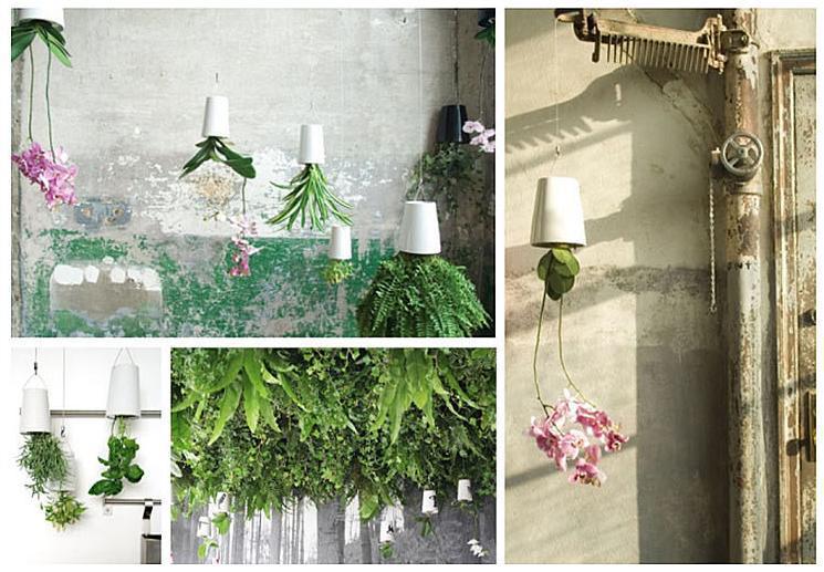 Активно применяйте подвесные модели кашпо, с их помощью можно на отдельной стене создать эффектную флористическую композицию.