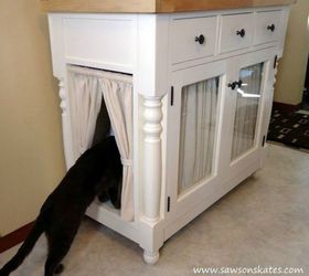 Как это сделать? Мебель, сделанная своими руками, например шкаф, которую вы уже приобрели дома, вырежьте отверстие, достаточно большое, чтобы ваша кошка могла пройти на одном конце, а затем просто поместите в него лоток и коврик для туалета.