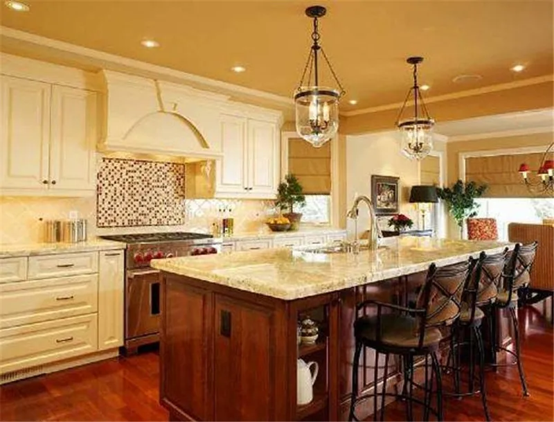 Подвесные светильники распространены на острове, но вместо них можно использовать люстры, чтобы создать уникальный вид.