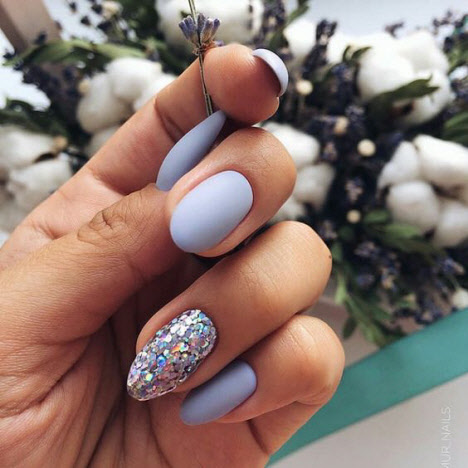 В тренде миндалевидный маникюр, использующий сочетания разный фактур ногтевых покрытий. Зеркальный, металлизированный, матовый и глянцевый лак идеально смотрятся на миндальной поверхности и не требует дополнительного декора.
