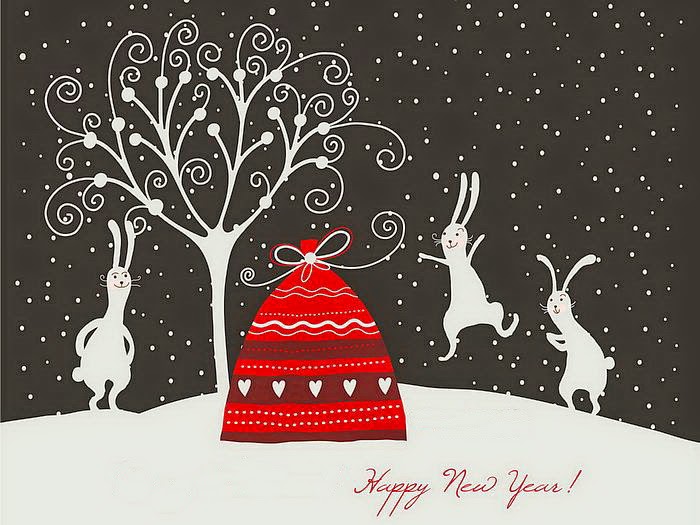 neujahrskartendesign für das jahr des hasen im jahr 2023. — Новогодняя открытка с графикой, клипартом, мультфильмами и символомNeujahrskartendesign für das Jahr des Hasen im Jahr 2023.
