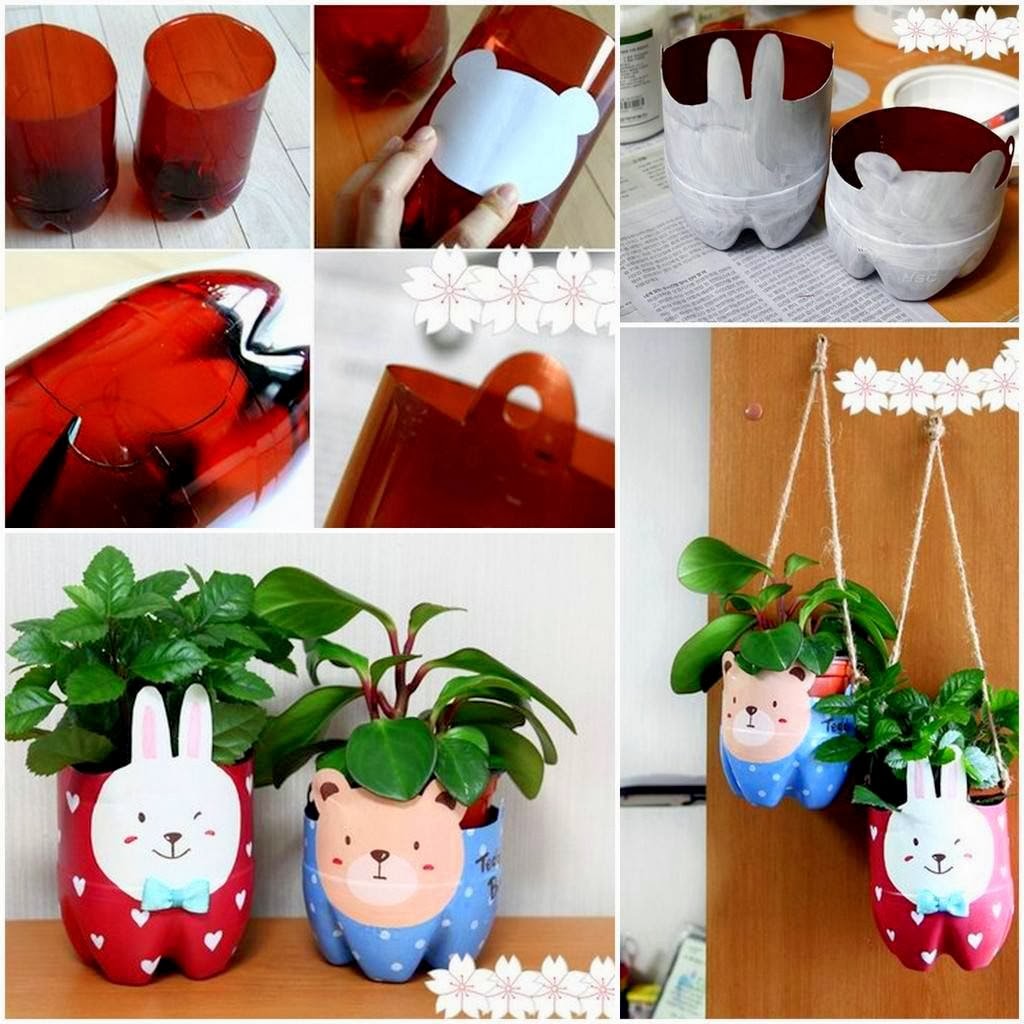 Если вам требуется какой-либо аксессуар для дома, оглядитесь вокруг. Возможно, вы самостоятельно сумеете смастерить оригинальную поделку из подручных средств. На фото показан процесс изготовления цветочного горшка из пластиковой бутылки, обернутой шпагатом.
