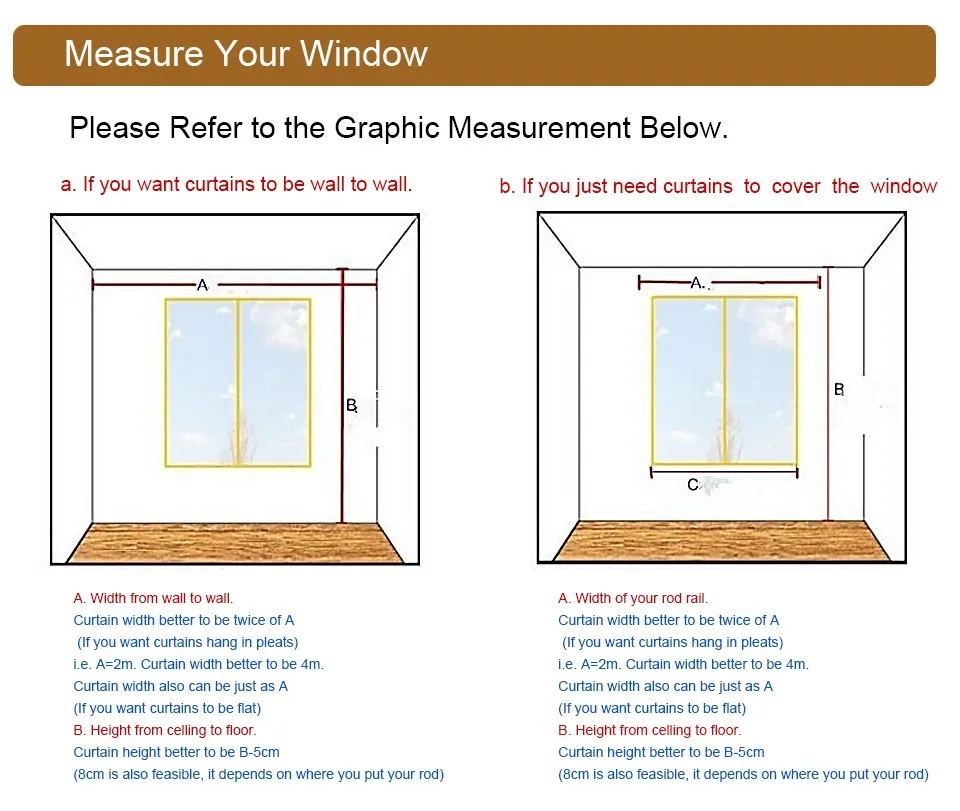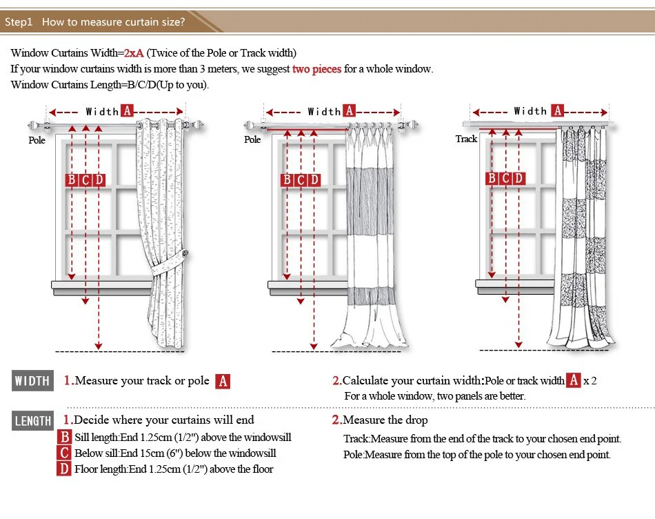 Ширина штор = 2 x A (удвоенная ширина стержня или дорожки).