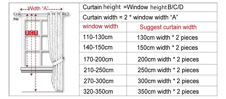 Кроме того, если вы планируете подгибать панели штор, добавьте 4 дюйма к ширине.